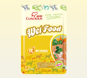 产品名称:原汁鲜鸡肉 规格型号:100g 每箱数量:120袋 公司网址:www.luspet.com
