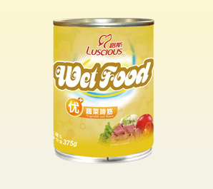 产品名称:蔬菜蹄筋 规格型号:375g 每箱数量:24罐 公司网址:www.luspet.com